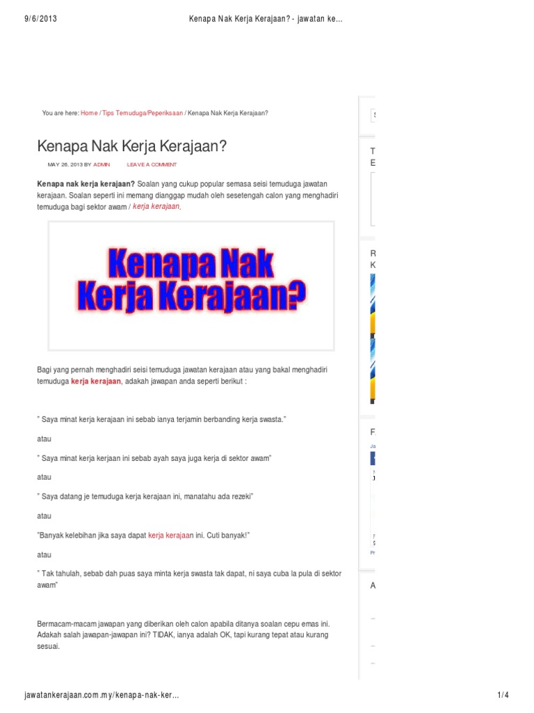 Kenapa Nak Kerja Kerajaan Jawatan Kerajaan Pdf